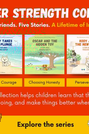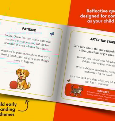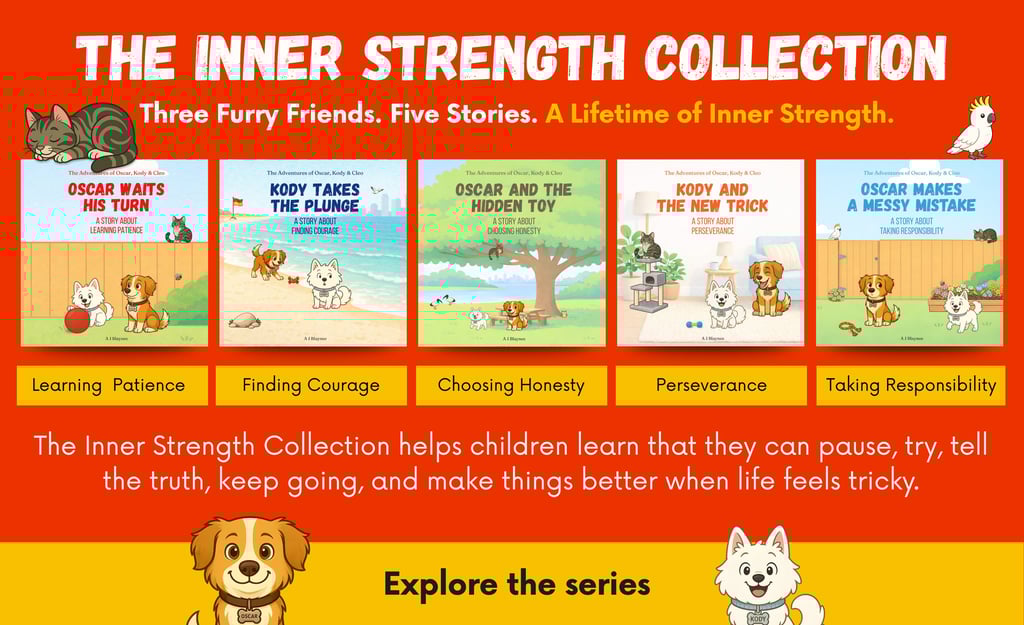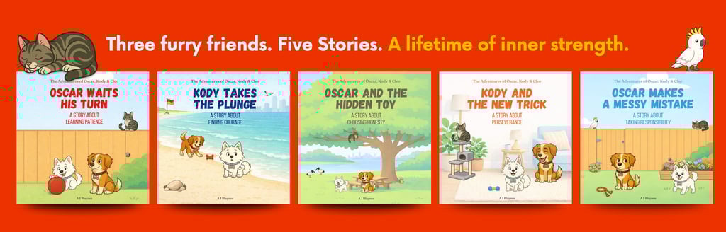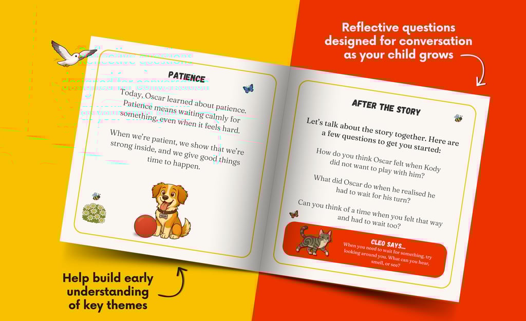 Each Oscar, Kody and Cleo story is designed to gently explore a real childhood challenge like honesty, bravery, responsibility, or giving up too quickly. Rather than correcting behaviour, the story walks alongside the child through the experience.